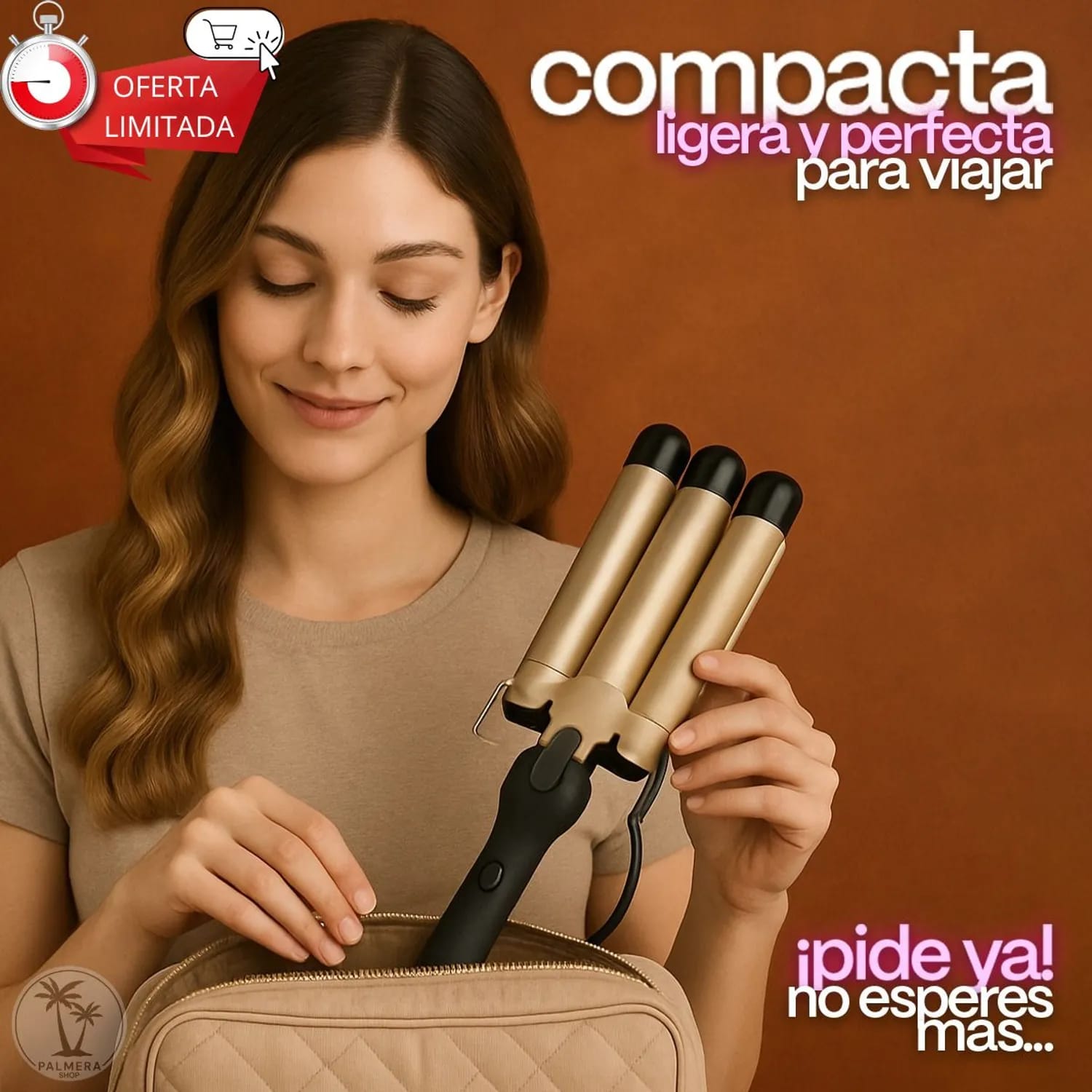 Ideal para Todo Tipo de Cabello: Ya sea que tengas cabello fino, grueso o rizado, este rizador de 3 tubos es perfecto para crear ondas duraderas y con un acabado natural.